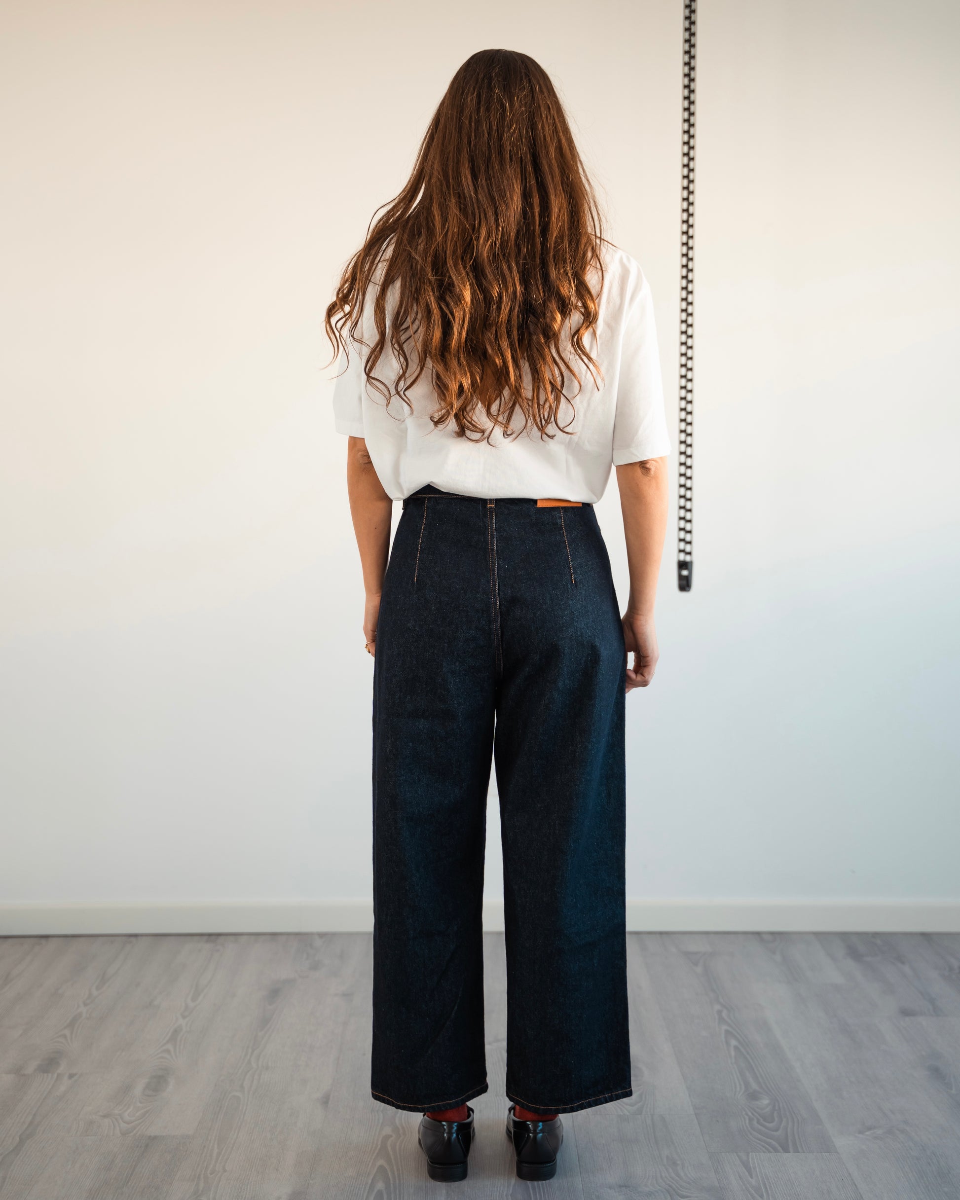Lavaggio raw blue. Tessuto 100% cotone, peso 12 once.