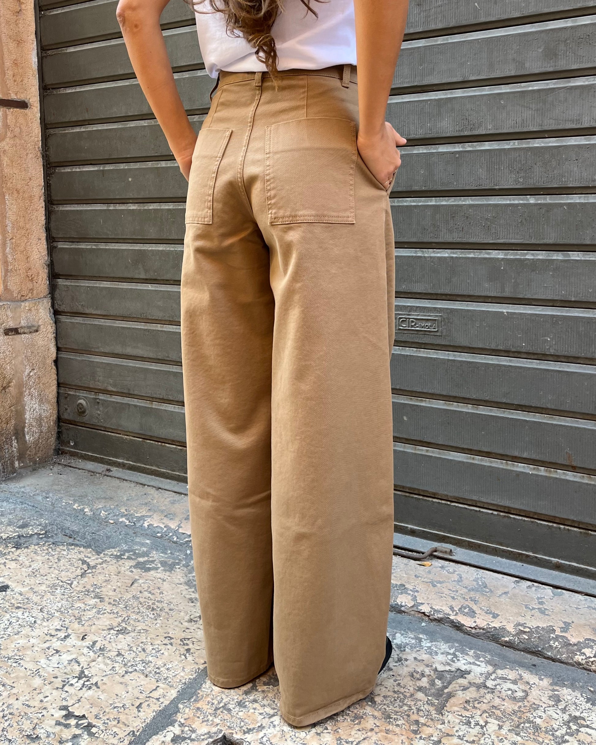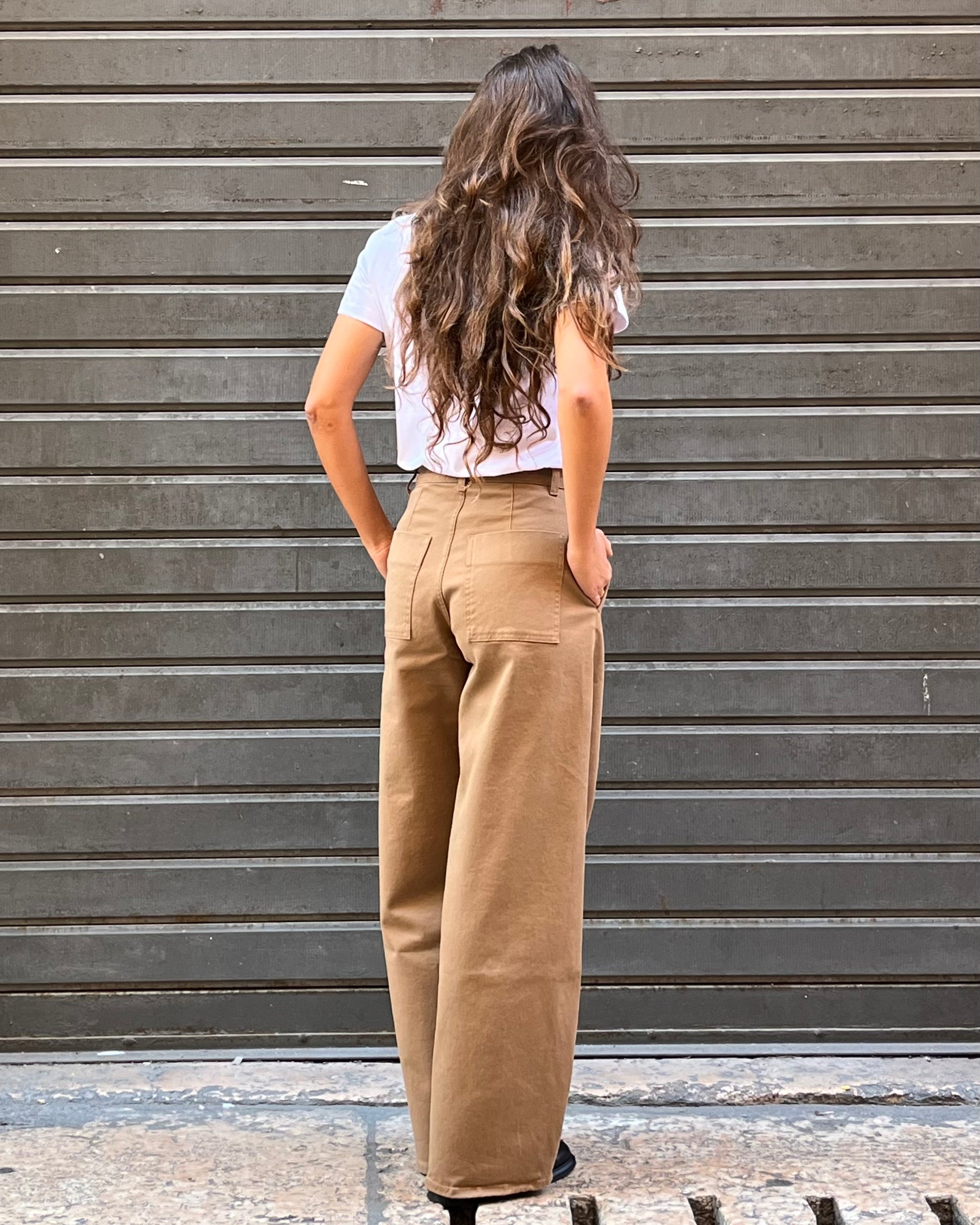 Colore camel, tessuto 98% cotone e 2% elastan.