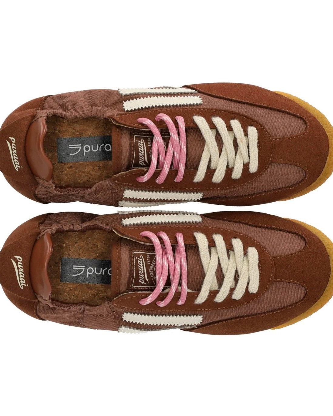 Modello Phanter, colore marroncino con dettagli rosa, logo off white e suola miele.