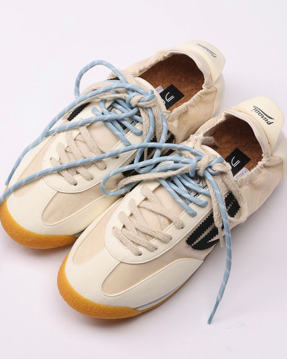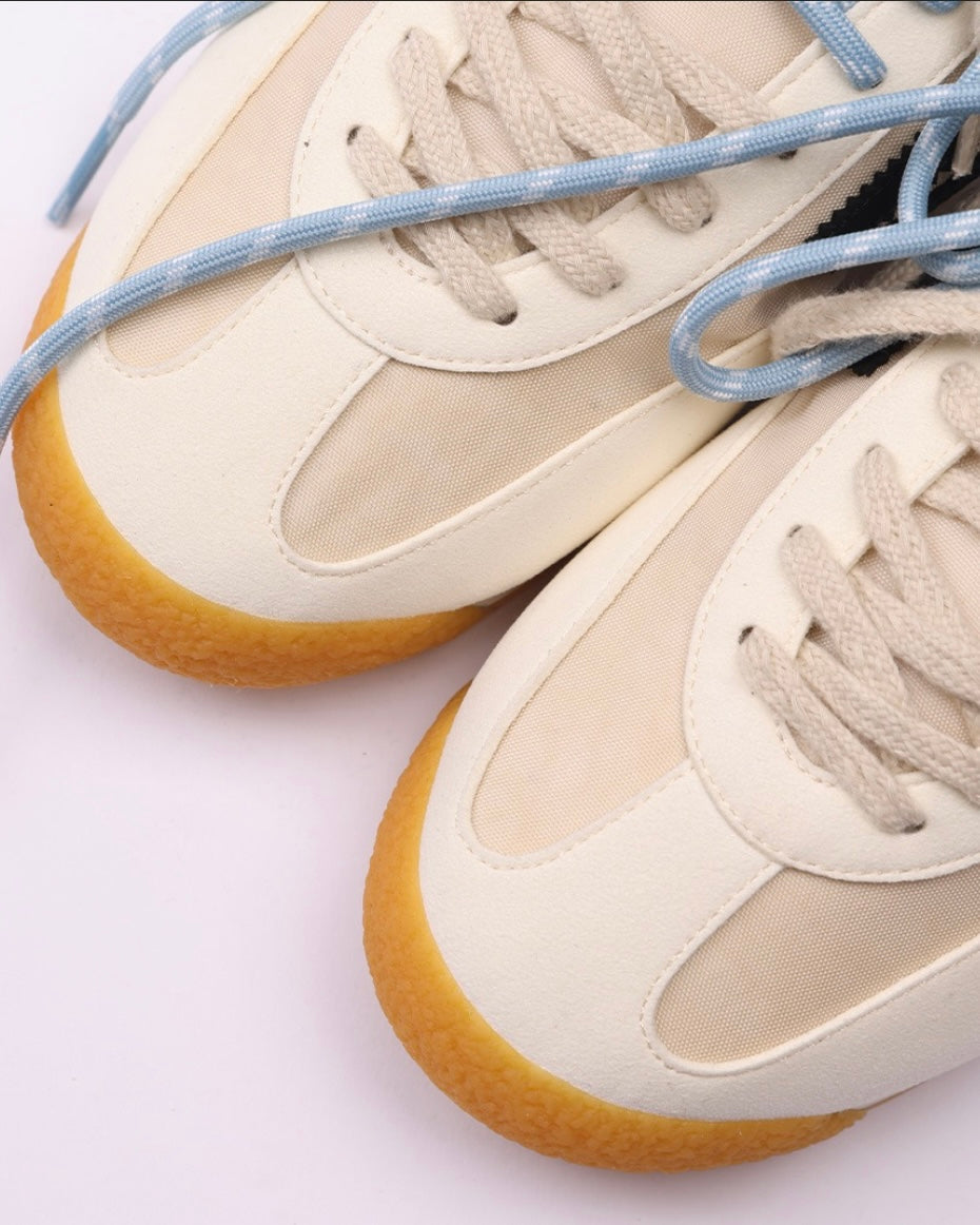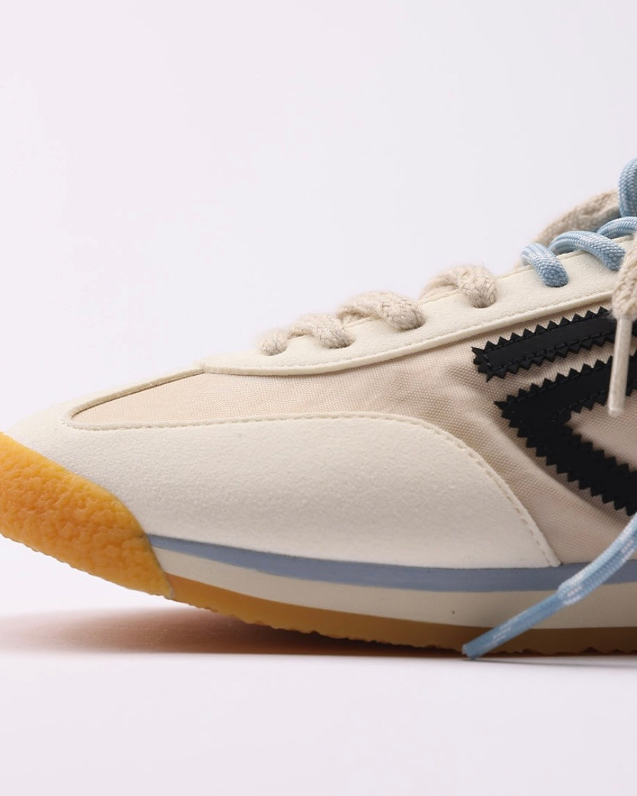 Modello Phanter, colore off white con dettagli azzurri, logo nero e suola miele.