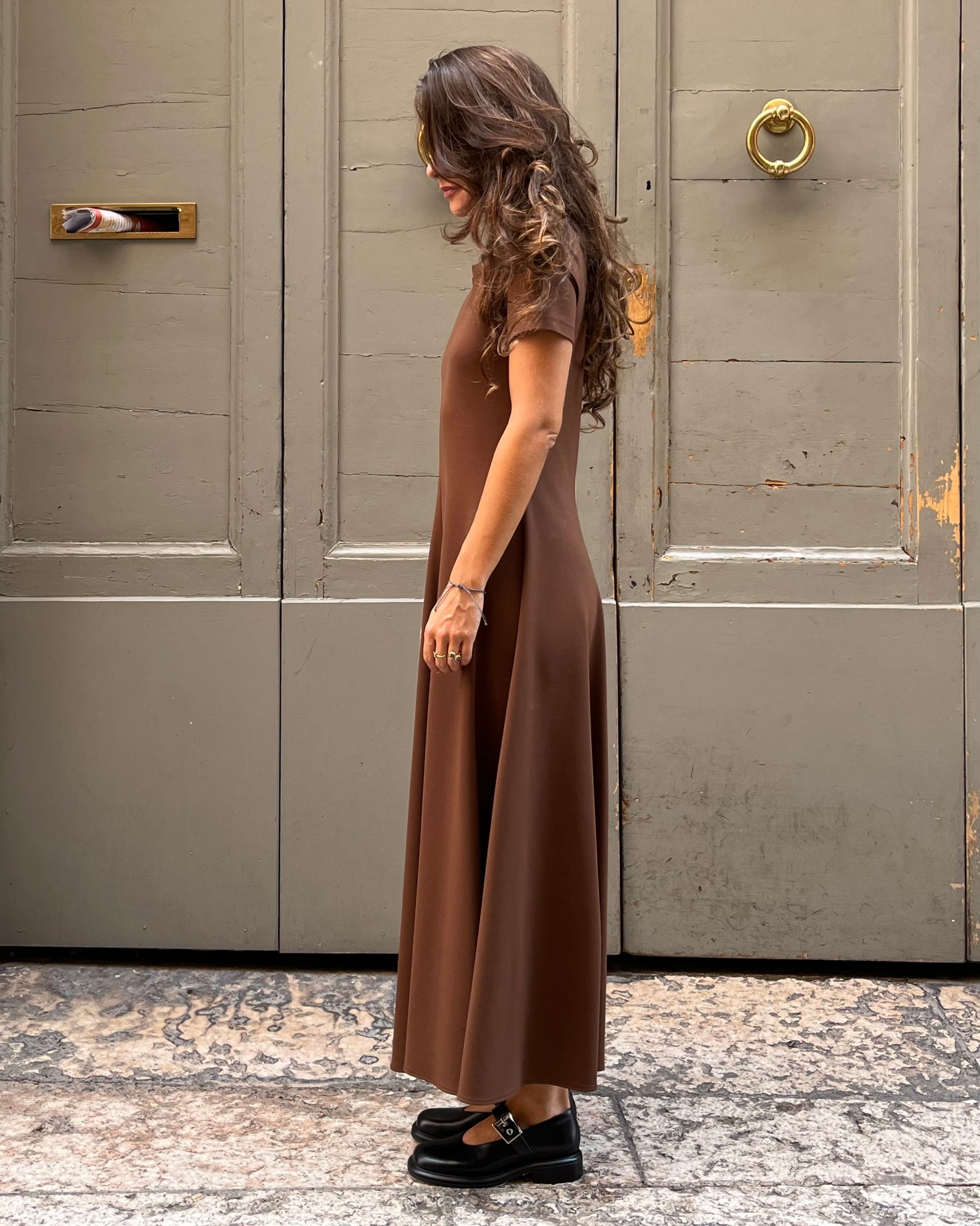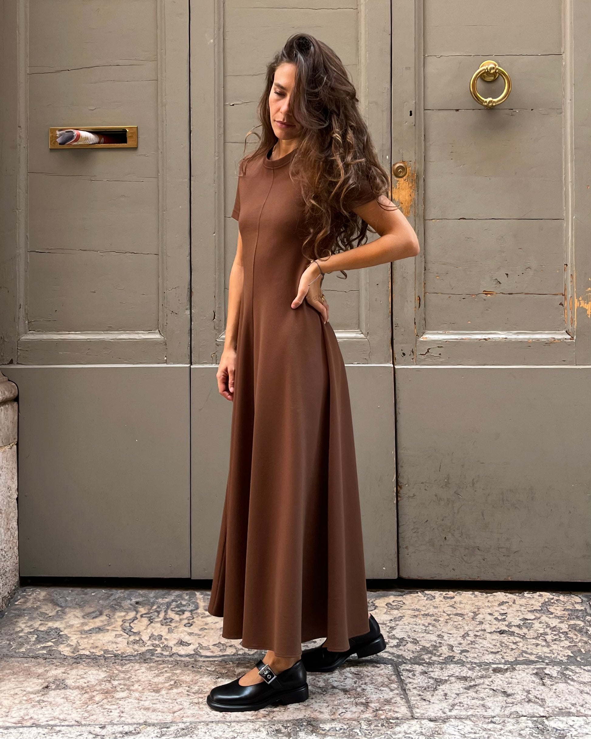 Vestito in punto milano di viscosa/poliammide/elastan, girocollo a maniche corte.
